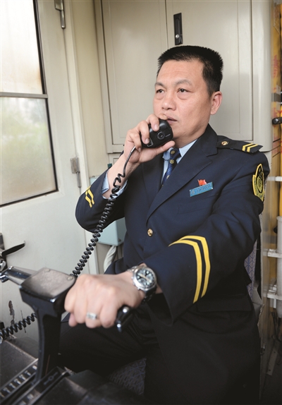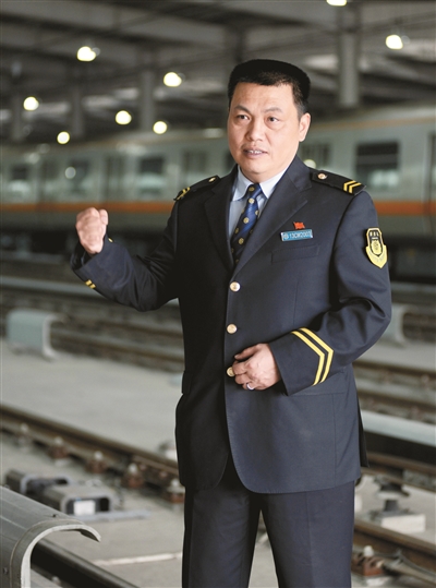 原来十年前,敖龙第一次乘坐廖明的车回家。列车关好车门后,敖龙听到了一声很洪亮的呼唤声“车门关好,出发信号绿灯”,透过玻璃,敖龙刚好看到廖师傅以标准站姿手指出发信号的一瞬间。“当时,我心里很有感触,廖师傅工作起来真精神啊!后来每次赶上坐廖师傅车的时候,我都能看见他的标准化作业,一年、两年……一直到现在!可以说第一次坐廖师傅的车带给我的影响和思考,也一直延续到现在。安全行车第一人,他当之无愧!”