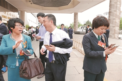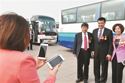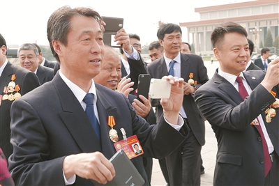 劳模们来到人民大会堂,喜悦心情溢于言表。很多劳模身上都戴着大大小小的各类奖章。“今天上午,在人民大会堂参加全国劳模表彰大会。”闵鹿蕾在自己的微博上写道。