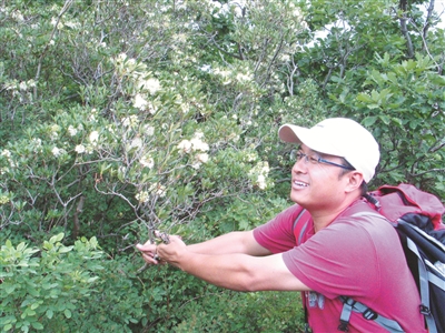 在北京植物园植物研究所并不大的实验苗圃里,一株株小苗青翠可人,生机勃勃。早上8点,记者见到了樊金龙。他正在苗圃检查植物生长情况。在巡视了一圈之后,他走到距离苗圃不远的一片丁香花前,挑挑拣拣地折了十几根枝条。“这是我们采种用的。趁着天还不太热,我们准备再嫁接一批,让花朵开得更好看。”樊金龙一边折枝,一边对记者说。
