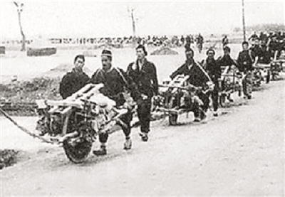 淮海战役是解放战争时期中对国民党军进行的战略性进攻战役。战役于1948年11月6日开始,1949年1月10日结束。人民群众成为战役的坚强后盾。图为浩浩荡荡的淮海战役支前民工大军,是解放军赢得淮海战役的重要保障。