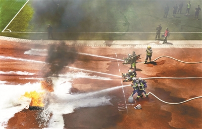 “预备……开始!”随着裁判员彩旗一挥,两名消防战士飞奔了出去,两米多高的板障一翻而过,随后各自拎起两盘水带迅速通过独木桥,再铺设水带,一气呵成,用时23秒。5月7日,在位于大兴区的消防培训基地,举行了为期两天的春季考核对抗赛,北京消防总队所属的20个支队,共240名官兵参赛。