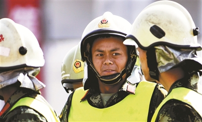 比赛共设置新兵五项全能、攀登挂钩梯、球场体能综合操、实战1号、2号操、泡沫车架设移动炮操等体能、技能、实战操法科目。丰台支队方庄中队的陈松今年18岁,是2014年9月刚入伍的新兵,此次参加四个项目的比赛。马上要进行百米障碍赛的他告诉记者,入伍以来一直刻苦训练,平时成绩还行,但他直言考核毕竟和平时训练不一样,“感觉有些压力,比赛能正常发挥就行。同时,也想在比赛中提高自己的实战水平。”