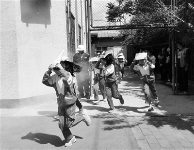 每个楼道拐角都有人值班,上课教师负责疏散班内学生,学生头顶书本、捂住口鼻有序跑出教学楼……近日,朝阳区教委在康乐园小学举办“科学减灾 依法应对”2015年朝阳区教育系统应急管理进校园主题宣传周现场会,康乐园小学展示了利用区教委编写的《安全管理手册》等资源开展应急疏散和自救自护的情况。按照教育部要求,中小学每年要定期开展应急演练,以提高师生安全�