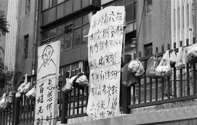 这是一道难看的风景,这是城市文明的一道伤疤,画面让人目不忍睹。居民将这些垃圾挂到小区护栏上,据说是为了能尽快解决小区路面硬化和办证问题,不过报道语焉不详,但目的都是为了求得问题的解决。