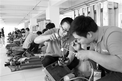 昨天,北京苏宁组织售后服务系统的150名空调安装维修工程师进行了空调服务技能大赛。此次“大练兵”不仅对工程师的职业技能进行全面检验,同时对售后工作人员也进行系统全面的再培训,以满足空调旺销期间的配送、安装服务需求。本报记者 孙妍 摄影报道
