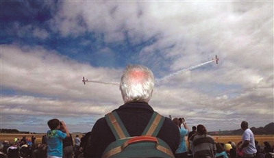 默海德:这位仁兄不光看飞行表演,还把发型改变了。