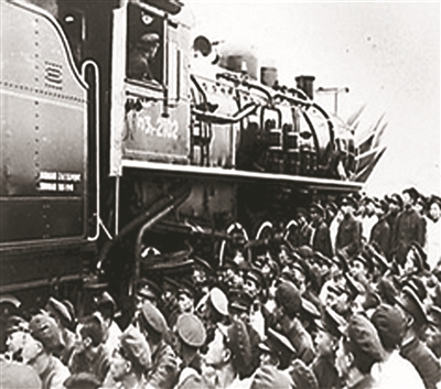 1952年9月4日,中央人民政府铁道部颁布了《关于调整铁路组织机构的决定》,执行新的组织结构,改组铁路分局为运输分局。图为广大铁路职工聆听决定内容。