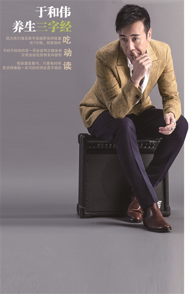 黑色潮帽、黑色短袖、黑色运动裤、潮鞋,一个健康又时尚的形象映入记者的眼帘,他就是于和伟,与他荧屏上成熟稳重的形象不同,多了几分健康美;与他在北京卫视热播电视剧《下一站婚姻》中“霸道总裁”的精英形象不同,也不是他口中的“鲜肉罐头”(自嘲不是“小鲜肉”而是“鲜肉罐头”),而是一位彻头彻尾的健康大叔!