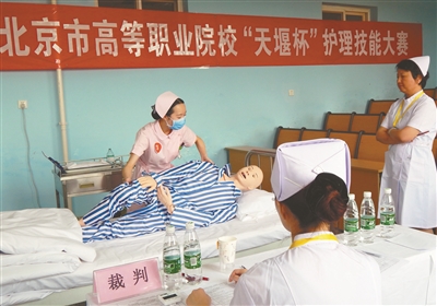 2015年北京市高等职工院校“天堰杯”护理技能大赛昨天在北京卫生学院举行。当天,参赛选手进行了心肺复苏、静脉输液、经鼻腔吸痰术和置胃管等项目的比赛。本次大赛以“强化护理技能教育,培养优秀护理人才”为主题,旨在通过以赛促训的形式,激发护生学习知识,钻研技能的积极性,提升全市护理高职生的技能水平。