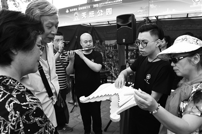 市公园管理中心“首届科普游园会”昨天启动,50项科普互动展示集体亮相。现场,天坛职工的古代乐器演奏与现场制作、颐和园瓦当纹样DIY印制、北京植物园的香囊DIY、香山公园雨水利用科普等创意受到游客极大关注。本报记者 邱勇 摄影报道