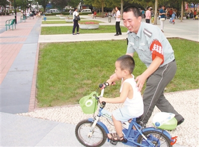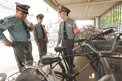 还有一次,海特花园50号楼和51号楼居民相继丢失了电动车、自行车,为尽快抓获偷车贼,小区分队长贾树庆调取了两次丢车的监控录像,将犯罪嫌疑人的体态特征传达给每个保安员,根据盗车分子的作案规律,制订了临时应急工作方案。除正常巡逻外,贾树庆和小区保安放弃午休时间,在每天中午11时至13时期间,带领6名保安在海特东、西两院加班布控,整个保安队的午饭也延迟到13时30分。