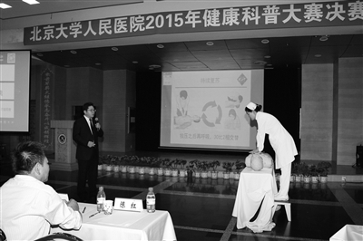 北京大学人民医院健康科普大赛近日落下帷幕。共有医、护、技各岗位34名选手报名参与,最终前10名选手进入决赛。决赛分为“我是演说家”、“健康脱口秀”、“听你来解答”三个环节,既展现选手的专业知识,又考验选手的表现力和临场应变能力。通讯员 汪铁铮 摄影报道