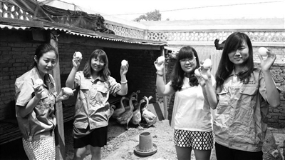 道桥集团石家庄至冀晋界公路项目部因地制宜在住地生活区开辟了一块农场,养殖了猪、鹅、鸡等家畜家禽,种植了豆角、茄子等十多种蔬菜,改善和丰富了项目部员工的生活。项目部成立两年来,自产各种蔬菜累计超千斤,出栏肥猪20多头,鸡、鸭、鹅300多只,自产鲜蛋数百斤。项目农场既让大家吃到了绿色食品,又降低了采购成本。图为项目部女员工捡拾鹅蛋的情景。本报记者 马超 通讯员 杨晓成 摄影报道