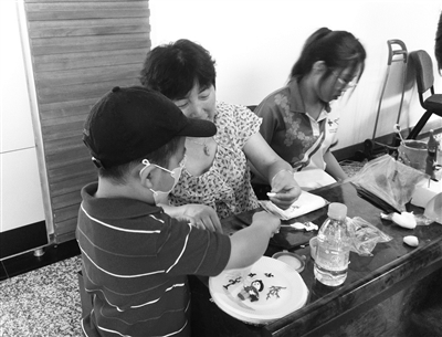 西城区文委也组织部分手工艺者带来非物质文化遗产展示项目,泥塑彩绘脸谱、面塑、彩蛋……为现场的小患儿带去艺术与童趣的享受。两个护士小心翼翼地拿起面人,说要给病房里的重症患儿送去。