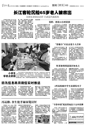 长江客轮沉船65岁老人被救出