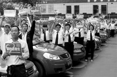 6月4日,山西太原“爱心送考生”出租车队吹响集结号,约2000余名出租车司机领到“爱心军令状”。今年高考期间,这些贴着爱心标识的车辆将驶向该市大街小巷,免费为高考生提供接送服务。(6月4日中新网)