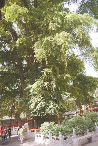 2015年的夏天已经来了,这两棵银杏树又披上了绿衣。尽管很多游人更喜欢它们秋天的那一袭黄衣,但它们依然摇曳着绿叶,尽情舒展着、茁壮成长着。王宝国领着记者在帝王树下转了一圈,又在配王树下转了一圈,然后问记者:“你能发现不一样的地方吗?”记者一脸狐疑地看了看这满眼的绿色,摇了摇头。王宝国说:“你看这棵帝王树这边的叶子比往年稍微有些小,颜色也有些浅,说明该给它补充营养了。下一步我们就要开始进一步给它们搭配营养套餐了。”