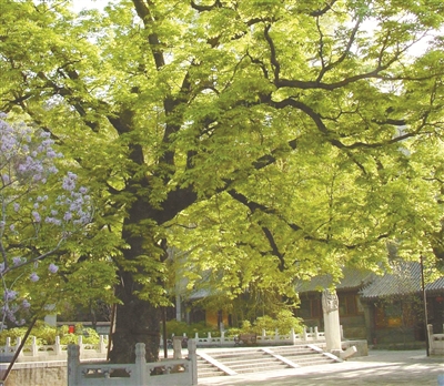 “帝王树”和“配王树”屹立于大雄宝殿的左右侧,它们用庞大的躯体证明了它们饱经沧桑。“帝王树生长多少年了?”记者的问题刚一出口,王宝国便笑了:“很多人都问这个问题。”王宝国告诉记者,尽管他跟古树打了二十多年的交道,但他也不知道帝王树和配王树的年龄。“你看这帝王树根部有很多小的银杏树,它们慢慢的成长的就跟大树融合到一起了,我们根本不能确定。我们只能根据一些历史材料来确定这两棵古银杏树的大概年龄,还有就是根据其它枯死的银杏树的年轮,来推算它们的树龄。所以我只能告诉你,它们已经生长了1000多年了。”