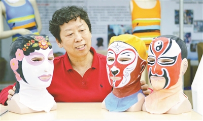 用于海边防晒的“脸基尼”走红之后,它的发明者青岛大妈张式范近日又推出绘有京剧脸谱的第四代脸基尼。