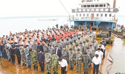 按照传统习俗,6月7日是“东方之星”号客船遇难人员的“头七”祭日。上午9时,沉船救援现场举行了哀悼遇难者活动,现场所有人员面向遇难船舶肃立默哀3分钟,现场船舶同时鸣笛3分钟,表达对逝者的哀悼。截至7日下午6时,“东方之星”遇难者人数已升至432人,有14人生还,仍有10人下落不明。(新华)