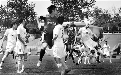 “工体杯”第六届北京市职工足球联赛,6月7日迎来第二个小组比赛日。在当日举行的6场比赛中,中冶交通和北京电力的比赛最为激烈。比赛一开始,中冶交通就对北京电力球门发起猛攻,队员传接配合默契,多次进攻到对方球门前,只可惜临门一脚欠佳。面对中冶队强大的攻势,北京电力球员奔跑体力不支,多次犯规,在下半场20分钟被红牌罚下一名队员。然而,就在伤停补时阶段,少一名队员的北京电力在前场获得一次任意球机会,7号队员陈玮璐拔脚怒射撕开了中冶交通队的大门,以10获胜。本报记者 周世杰 摄影报道