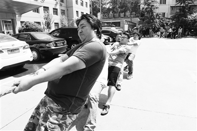 “提绳!”“倒!”“走!”在拉拉队员的呐喊助威下,两个项目部的职工正在使出浑身力气为集体荣誉而努力,这是北京城建十六公司工会组织的“我运动 我快乐 我健康”体育系列活动拔河比赛的一个场景。今年以来,该公司将每周的二、五设为职工运动日,鼓励职工积极参与运动。本报记者 卢继延 通讯员 李勇 摄影报道