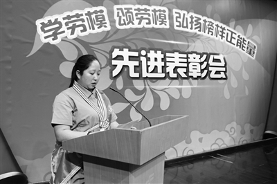 北京邮区中心局近日召开“学劳模 颂劳模 弘扬榜样正能量”先进表彰会。会上,为新荣获市劳动模范的重件出口作业区分拣员申爱菊颁发了荣誉证书和奖章。现场,申爱菊讲述了自己的成长历程和先进事迹。通讯员 梁岩 摄影报道