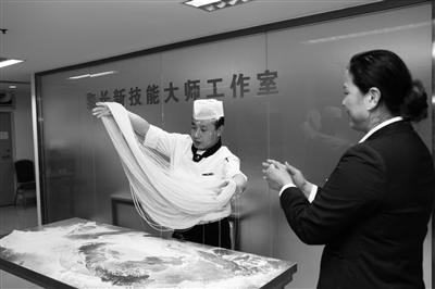 记者:您是面点大师,在抻面上有绝活,如何让技能更好的传承,有什么方法?