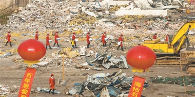 长沙城中村鸭子铺三面环水,这里的婚宴富有乡村特色。一个婚庆表演团队正穿过一片废墟来到邓家婚宴现场,一场盛大的婚宴在鸭子铺5队原货运十八站的空地上举行。