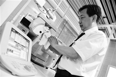 走进秦英瑞技能大师工作室,各种高科技的验光设备正在为顾客服务。这个被称为综合验光台的大物件实行的是开放式验光,顾客坐在一个地方,机器转动起来,各种检测仪依次转过来,一步一步进行检查。记者了解到,这里面好几个设备都是国内仅有的,全世界范围最先进的。
