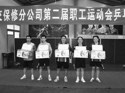 2011年,厂里乒乓球协会的队员们,参加公交保修分公司工会组织的第二届乒乓球比赛。经过八个保修厂,几十名乒乓球队员在赛场上的激烈角逐,我们的队员取得了第二、第四的好成绩。比赛结束后,队员们欣喜的合影留念。