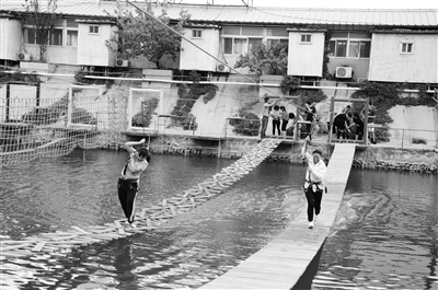 拓展训练过程中,张开开在水上闯关项目中意外落水,成为活动中让人倍感温暖的小插曲。