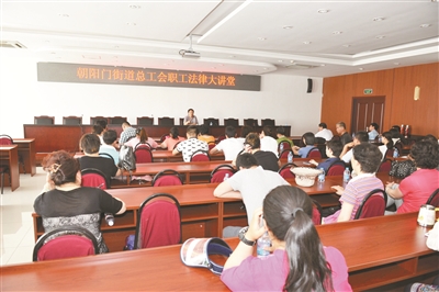 《中华人民共和国工会法(修正)》第一章第六条规定:维护职工合法权益是工会的基本职责。工会在维护全国人民总体利益的同时,代表和维护职工的合法权益。这已成为东城区朝阳门街道总工会工作人员服务职工的一道标准。