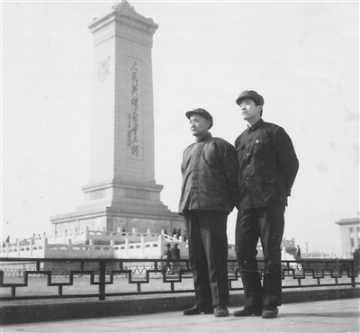 父亲温暖的手又牵着我的手,来到人民英雄纪念碑前,认真地照了这张合影。自从那天以后,我无论喜忧悲欢,总能坦然面对。每次端祥这张照片时,我都会感觉到身着中山装外套的父亲仍然牵着我的手,仍能感受到他手心的温暖,他的话总是清晰地回响在我的那个空间。今年是抗战胜利70周年,我为有一个英勇的抗日父亲而自豪。