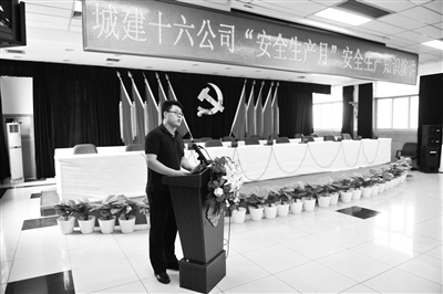 “宁可听到骂声,不愿听到哭声。”6月15日,来自城建十六公司房山安置房项目部的年轻安全员张松,以自己的实际工作经历告诫在座的安全员,安全责任重于泰山,安全管理工作没有“差不多”。当天,十六公司举办了“安全生产月”安全生产知识演讲活动,经过基层单位推选的6名安全员,站在演讲台前,讲述着自己跟安全管理工作的不解之缘。本报记者 卢继延 通讯员 雷蕾 摄影报道
