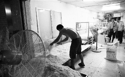 近日,深圳一家热干面黑作坊被曝光,记者蹲守发现,这家作坊白天闸门紧闭,半夜忙碌赶工,每晚制面2000斤,供给深圳南山科技园。由于作坊内没有空调,工人赤膊上阵、汗流浃背工作,也没有佩戴手套及口罩,汗水滴在面条上是常事。而在生产过程中,有工人甚至用手抠完脚后直接接触面粉。(6月18日《南方都市报》)