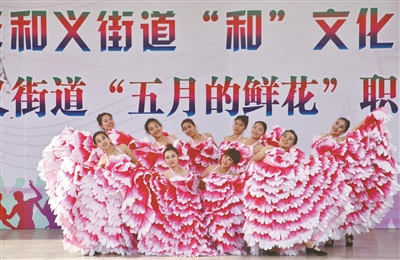 6月5日,和义街道总工会在和义街道大舞台举办了职工“五月的鲜花”文化节活动。辖区9家联合工会及2家建会单位共150人参加了这次汇演。汇演节目以舞蹈《阳光路上》开场,以合唱《走向复兴》结束。舞台上,参演人员个个精神饱满,意气奋发,穿着绚丽的服饰,伴随着欢快的节奏尽情舞动,以动听的歌声和优美的舞姿展示了各自的风采。