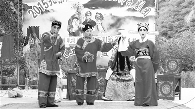 端午节期间,北京燕赵鹏飞河北梆子剧团应怀柔区文委的邀请,来到怀柔喇叭沟门满族乡,为村民送上7场免费戏剧大餐,受到村民的欢迎。在演出现场,一位村民感慨地说:“乡亲们不出村就可欣赏到精彩、丰富的传统剧目,真是太好了。”图为6月21日下午,该剧团为中榆树店村民演出河北梆子《双官诰》。