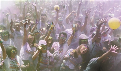 | ▲园博园“彩色跑”如期开赛,2万多彩色跑爱好者在“最美赛道”上演最欢乐的5公里跑,并首次在2.5公里处增加泡泡站,多种时尚元素凸显活力新丰台。 |