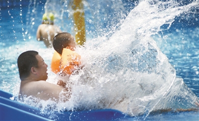 | ◀露天游泳场成为市民消暑纳凉的好去处。 |