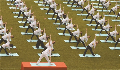 | 在北京大学五四体育场,近500名瑜伽爱好者集体展示瑜伽技艺,用健身的方式度过端午节。 |