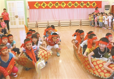 | 在崇文回民幼儿园,孩子们在老师的带领下学习包粽子、缠香囊,伴着锣鼓声“赛龙舟”,感受浓浓的端午氛围。 |