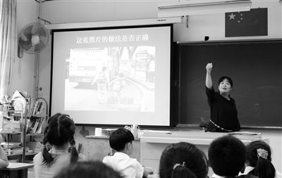 日前,公交客一分公司第四车队党支部带领安全、服务、工会、团支部来到郑各庄小学,为即将放假的小学生,开展了一次“交通安全伴我行、争做文明小乘客”的乘车安全宣传教育进课堂活动。本报记者 陈艺 摄影报道