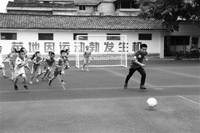 “白队白队,乘风破浪,勇闯第一!”“蓝队蓝队,英勇无畏!”从来没有响过足球对战口号的成雅小学足球运动场上传来了阵阵欢乐的呐喊。
