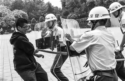 昨天,玉渊潭公园开展了消防、处突、防爆等项目的安全演练。参加演练的不仅有公园护园队工作人员、保安人员,更有公园各部门职工。5个项目40分钟的演练不仅提升了公园安防队伍的处突能力,也在全园形成了人人都是安全员的网格化布局。本报记者 邱勇 摄影报道