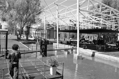 阳光下,老旧机床改造的长廊下面,悬挂着几个鸟笼式的吊椅,午休时间,三五成群的职工悠闲地在这里聊天,休息。不远处,循环在老工业设备中的水流哗哗作响。“园区内的瀑布、喷泉、水塘都是循环水,再过一段时间,就可以养鱼、养花,丰富水下的生态系统了。”高建平笑着说。