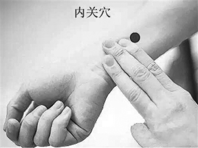 内关穴位于前臂正中,腕横纹上两寸,桡侧屈腕肌腱同掌长肌腱之间。当我们用力握拳时,这个地方会有一个比较明显的凹陷。此穴位可以宁心安神、理气止痛,对情绪调节有很好的作用。