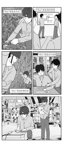 傍晚,忙完了一天的电气试验工作,国网北京电力检修分公司80后小伙郑绩从变电站下班回家。到家的第一件事,郑绩习惯性地打开电脑,开始画漫画。通过白天的工作他想到了一个新的安全用电的题材,拿起笔的一瞬间他说:“一天的精彩,都在我的笔尖下了!”