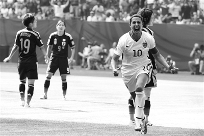 上届世界杯决赛就是在美日女足之间进行的,结果日本女足依靠点球战胜了美国女足,首次获得世界冠军。此番再战,两队没有了4年前的那种胶着,美国女足一上来就利用“闪电战”终结了比赛的悬念。开场仅3分钟,美国队获得角球机会,队长洛伊德抢点扫射得分。2分钟后又是洛伊德,利用一次任意球机会门前机敏射门再下一城。第14分钟,美国队霍利迪抽射破门,30。第16分钟,洛伊德中场得球,眼见日本门将站位过于靠前,她一脚惊天的吊射再度轰开日本队球门。仅仅用了16分钟,美国队就以4球领先,洛伊德还上演了帽子戏法。上届女足世界杯,洛伊德罚丢关键点球,目送日本人夺冠,而4年后美国女足队长完成了一次完美的“复仇”。洛伊德也成为了女足世界杯历史上首位上演帽子戏法的球员。