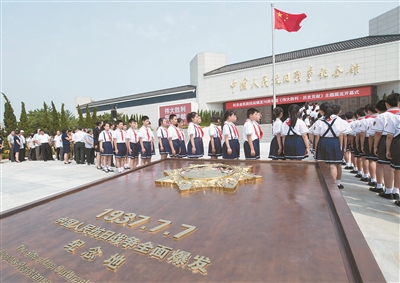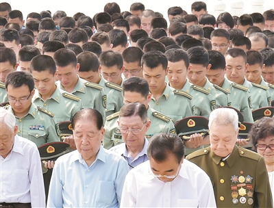 纪念全民族抗战爆发七十八周年暨《伟大胜利 历史贡献》主题展览开幕式7日上午在中国人民抗日战争纪念馆举行。主题展览通过大量珍贵图片和实物,全景式展现了中华民族英勇抵抗日本军国主义侵略的光辉历史,展现了中国共产党的中流砥柱作用。主题展览是中国人民抗日战争暨世界反法西斯战争胜利70周年纪念活动的重要内容。展览共分“中国局部抗战”“全民族抗战”“中流砥柱”“日军暴行”“东方主战场”“得道多助”“伟大胜利”“铭记历史”等8个部分。右图为首都各界人士代表排队入场参观展览。下图为首都各界人士在现场默哀。(新华)